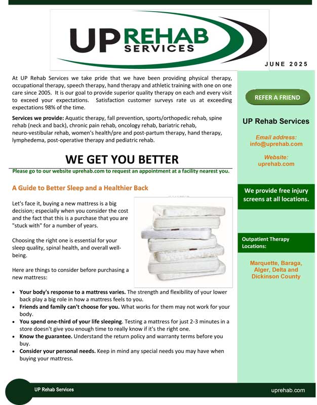 Click here to download our full newsletter A Guide to Better Sleep and a Healthier Back Let’s face it, buying a new mattress is a big decision; especially when you consider the cost and the fact that this is a purchase that you are “stuck with” for a number of years. Choosing the right one is essential for your sleep quality, spinal health, and overall wellbeing. Here are things to consider before purchasing a […]
