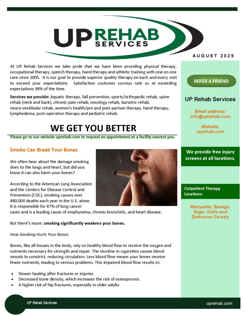 Click here to download our full newsletter Smoke Can Break Your Bones We often hear about the damage smoking does to the lungs and heart, but did you know it can also harm your bones? According to the American Lung Association and the Centers for Disease Control and Prevention (CDC), smoking causes over 480,000 deaths each year in the U.S. alone. It is responsible for 87% of lung cancer cases and is a leading […]